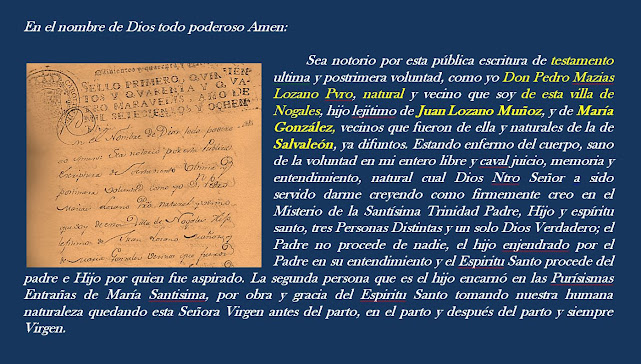 Imagen: Encabezamiento de la primera página del testamento de Don Pedro
